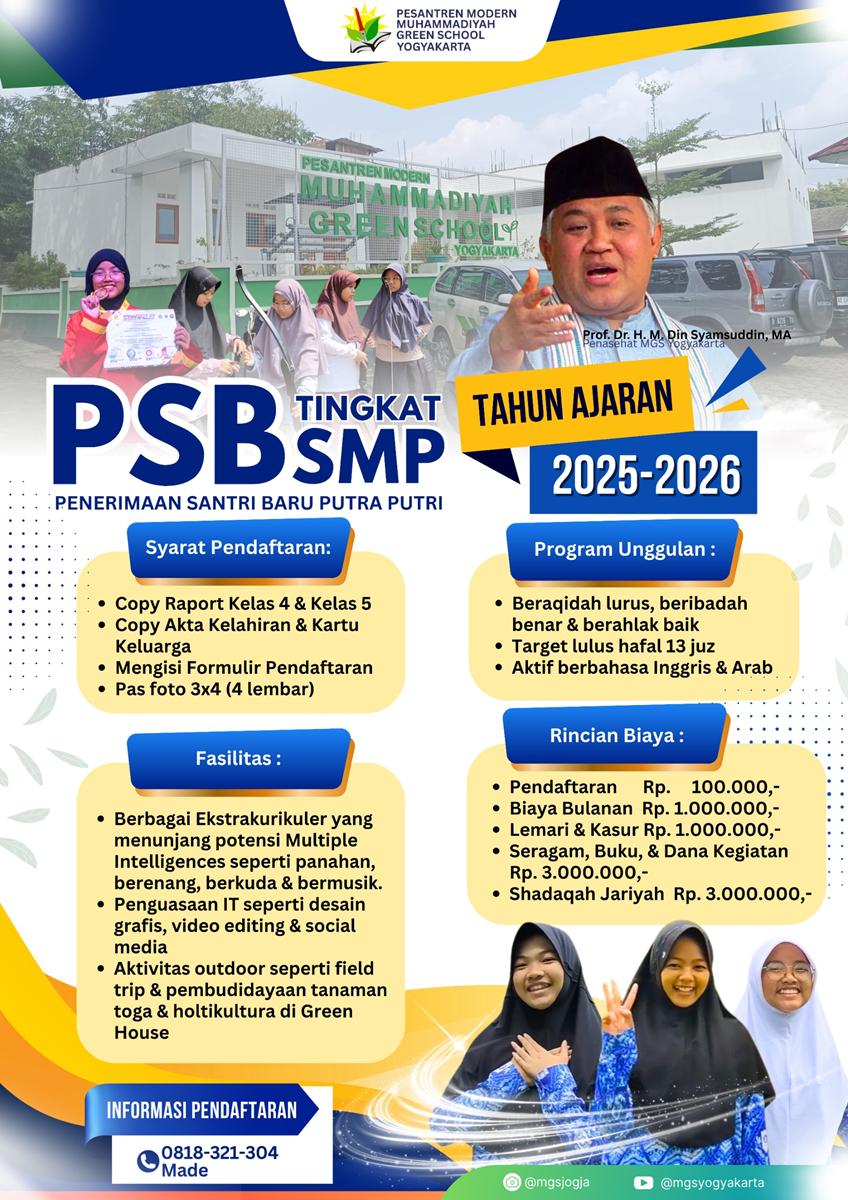 Pesantren Modern Muhammadiyah Green School (MGS) Yogyakarta kembali menunjukkan komitmennya dalam mengembangkan pendidikan yang holistik dan berwawasan masa depan. Pada 11 Februari 2025, sebuah kegiatan pendampingan penyusunan materi ISMUBA (Al-Islam, Kemuhammadiyahan, dan Bahasa Arab) berbasis Green School sukses dilaksanakan. Kegiatan […]